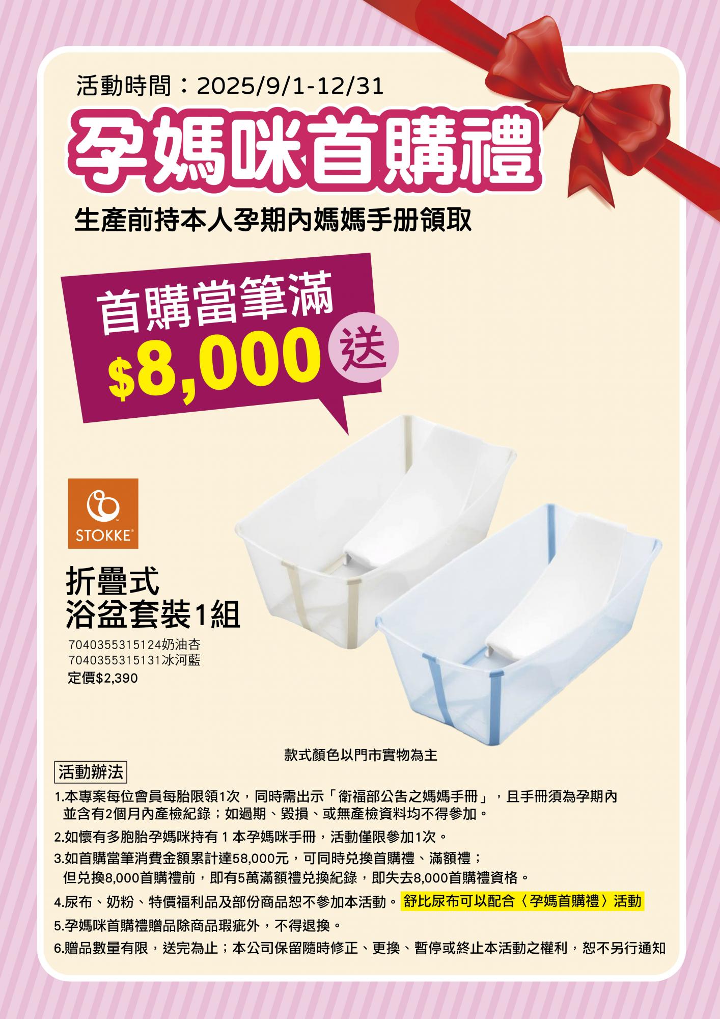 2025.9-12月 孕媽咪「 滿額$8,000」首購禮