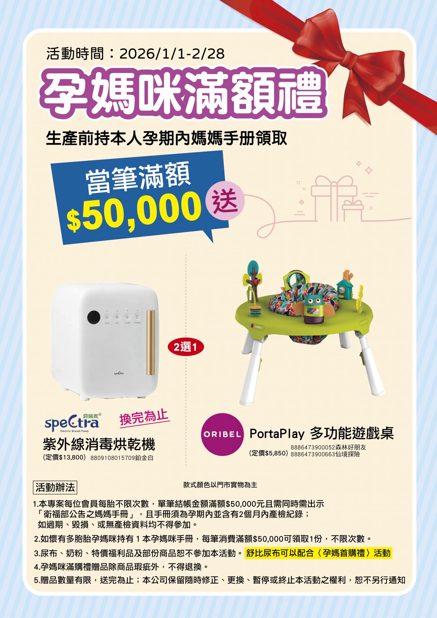 2026.1-2月 孕媽咪「滿額$50,000」滿額禮